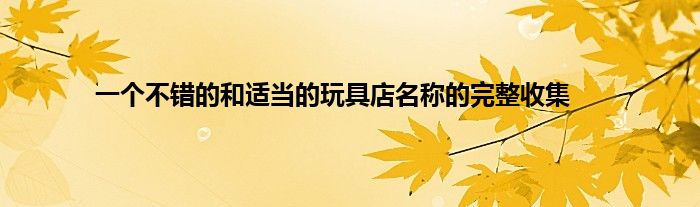 大家好,综合小编来为大家讲解下。一个不错的和适当的玩具店名称的完整收集这个很多人还不知道,现在让我们一起来看看吧!