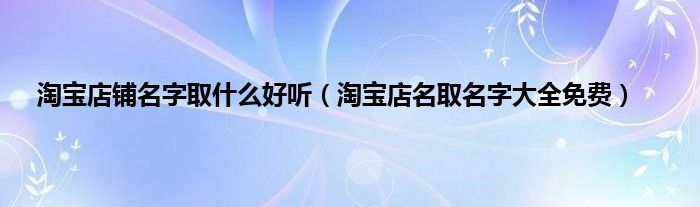大家好,综合小编来为大家讲解下。淘宝店铺名字取什么好听,淘宝店名取名字大全免费这个很多人还不知道,现在让我们一起来看看吧!