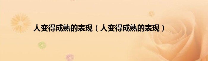 大家好,小科来为大家解答以上问题。人变得成熟的表现,人变得成熟的表现很多人还不知道,现在让我们一起来看看吧!