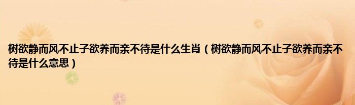 大家好,小科来为大家解答以上问题。树欲静而风不止子欲养而亲不待是什么生肖,树欲静而风不止子欲养而亲不待是什么意思很多人还不知道,现在让我们一起来看看吧!