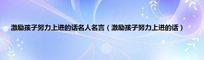 大家好,小科来为大家解答以上问题。激励孩子努力上进的话名人名言,激励孩子努力上进的话很多人还不知道,现在让我们一起来看看吧!