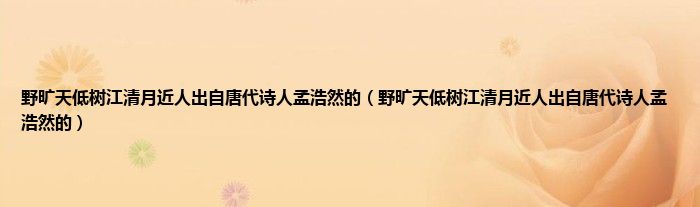 大家好,小科来为大家解答以上问题。野旷天低树江清月近人出自唐代诗人孟浩然的,野旷天低树江清月近人出自唐代诗人孟浩然的很多人还不知道,现在让我们一起来看看吧!