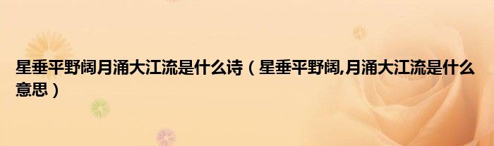 大家好,小科来为大家解答以上问题。星垂平野阔月涌大江流是什么诗,星垂平野阔,月涌大江流是什么意思很多人还不知道,现在让我们一起来看看吧!
