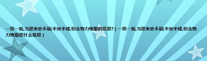 大家好,小科来为大家解答以上问题。一粥一饭,当思来处不易;半丝半缕,恒念物力维艰的意思?,一粥一饭,当思来处不易;半丝半缕,恒念物力维艰是什么意思很多人还不知道,现在让我们一起来看看吧!