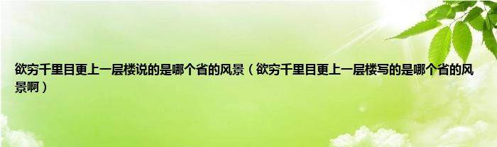 大家好,小科来为大家解答以上问题。欲穷千里目更上一层楼说的是哪个省的风景,欲穷千里目更上一层楼写的是哪个省的风景啊很多人还不知道,现在让我们一起来看看吧!