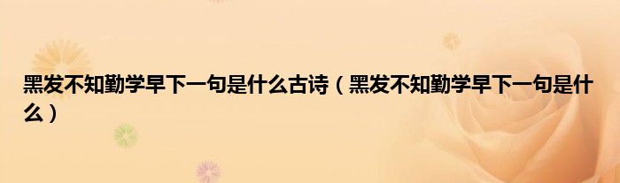 1、 “黑发不知早学”的下一句是:“白头悔晚学”。意思是:年轻的时候不知道好好学习,就知道玩。年纪大了就不知道学习了。太晚了,你后悔年轻时的贪玩。