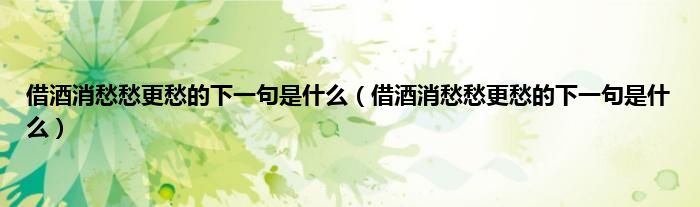 大家好,小科来为大家解答以上问题。借酒消愁愁更愁的下一句是什么,借酒消愁愁更愁的下一句是什么很多人还不知道,现在让我们一起来看看吧!
