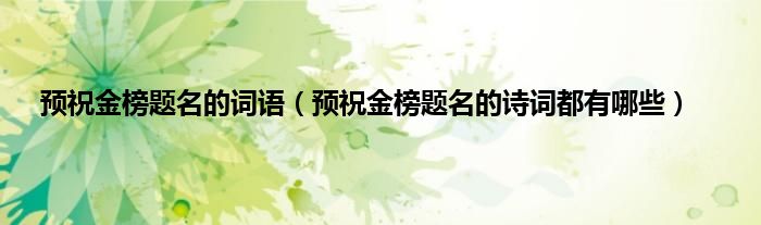 大家好,小科来为大家解答以上问题。预祝金榜题名的词语,预祝金榜题名的诗词都有哪些很多人还不知道,现在让我们一起来看看吧!