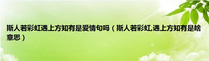 大家好,小科来为大家解答以上问题。斯人若彩虹遇上方知有是爱情句吗,斯人若彩虹,遇上方知有是啥意思很多人还不知道,现在让我们一起来看看吧!