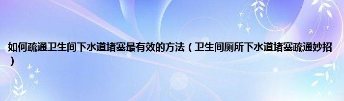 大家好,小科来为大家解答以上问题。如何疏通卫生间下水道堵塞最有效的方法,卫生间厕所下水道堵塞疏通妙招很多人还不知道,现在让我们一起来看看吧!