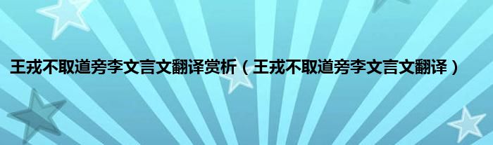 大家好,小科来为大家解答以上问题。王戎不取道旁李文言文翻译赏析,王戎不取道旁李文言文翻译很多人还不知道,现在让我们一起来看看吧!
