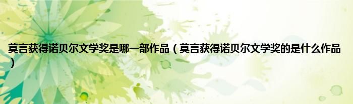 大家好,小科来为大家解答以上问题。莫言获得诺贝尔文学奖是哪一部作品,莫言获得诺贝尔文学奖的是什么作品很多人还不知道,现在让我们一起来看看吧!