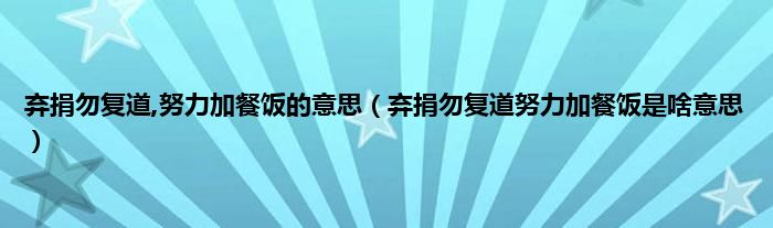 大家好,小科来为大家解答以上问题。弃捐勿复道,努力加餐饭的意思,弃捐勿复道努力加餐饭是啥意思很多人还不知道,现在让我们一起来看看吧!