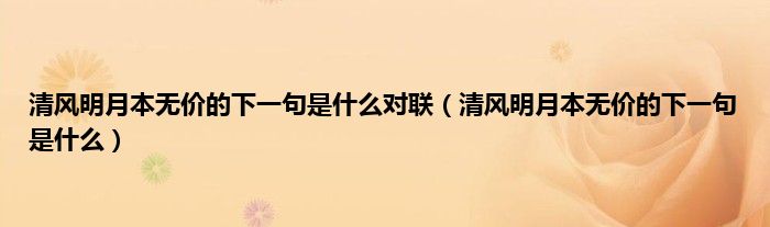 大家好,小科来为大家解答以上问题。清风明月本无价的下一句是什么对联,清风明月本无价的下一句是什么很多人还不知道,现在让我们一起来看看吧!