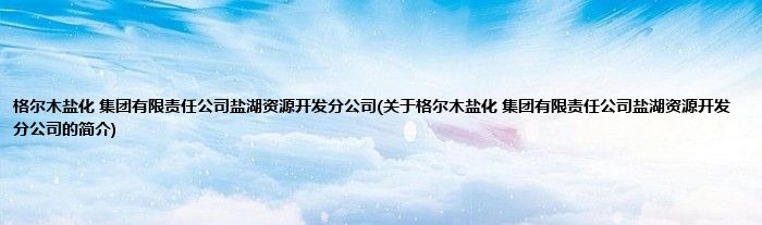本文关于格尔木盐化 集团有限责任公司盐湖资源开发分公司的简介就讲解完毕,希望对大家有所帮助。