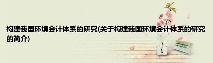 大家好,构建我国环境会计体系的研究,关于构建我国环境会计体系的研究的简介很多人还不知道,现在让我们一起来看看吧!