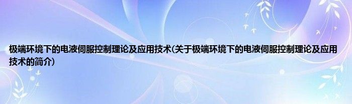 本文关于极端环境下的电液伺服控制理论及应用技术的简介就讲解完毕,希望对大家有所帮助。