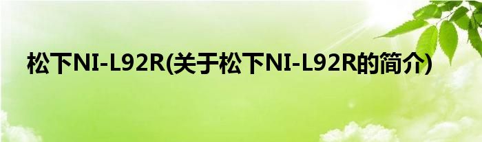 本文关于松下NI-L92R的简介就讲解完毕,希望对大家有所帮助。