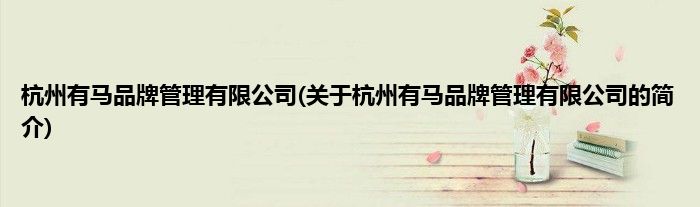 本文关于杭州有马品牌管理有限公司的简介就讲解完毕,希望对大家有所帮助。