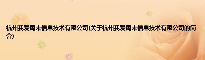 本文关于杭州我爱周末信息技术有限公司的简介就讲解完毕,希望对大家有所帮助。