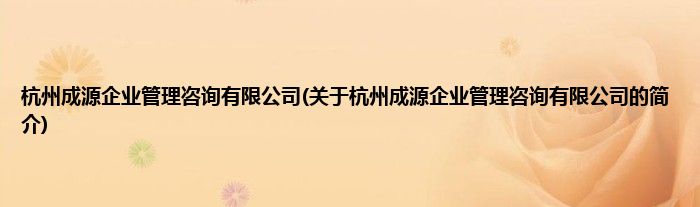 本文关于杭州成源企业管理咨询有限公司的简介就讲解完毕,希望对大家有所帮助。