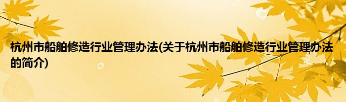 本文关于杭州市船舶修造行业管理办法的简介就讲解完毕,希望对大家有所帮助。