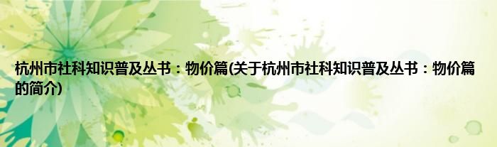 本文关于杭州市社科知识普及丛书:物价篇的简介就讲解完毕,希望对大家有所帮助。