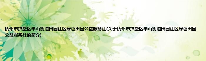 本文关于杭州市拱墅区半山街道田园社区绿色田园公益服务社的简介就讲解完毕,希望对大家有所帮助。