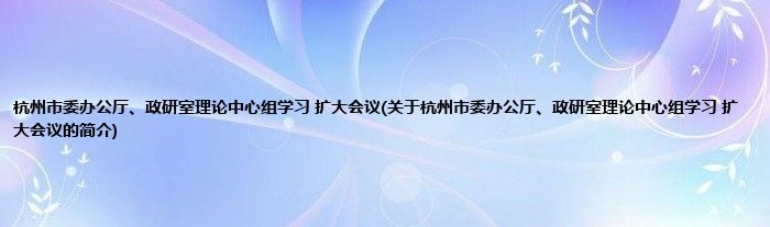 本文关于杭州市委办公厅、政研室理论中心组学习 扩大会议的简介就讲解完毕,希望对大家有所帮助。