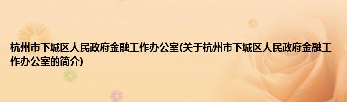 本文关于杭州市下城区人民政府金融工作办公室的简介就讲解完毕,希望对大家有所帮助。