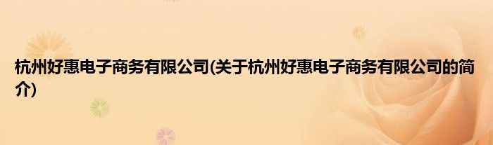 杭州好惠电子商务有限公司(关于杭州好惠电子商务有限公司的简介)