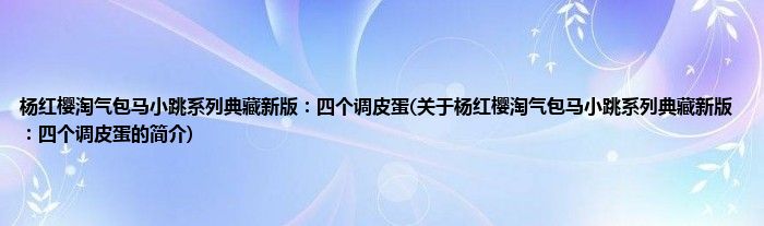 1、 《杨红樱淘气包马小跳系列典藏新版:四个调皮蛋》是2018年9月1日浙江少年儿童出版社出版的图书,作者是杨红樱。