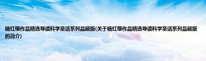 大家好,杨红樱作品精选导读科学童话系列品藏版,关于杨红樱作品精选导读科学童话系列品藏版的简介很多人还不知道,现在让我们一起来看看吧!