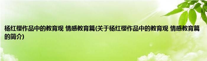 本文关于杨红樱作品中的教育观 情感教育篇的简介就讲解完毕,希望对大家有所帮助。