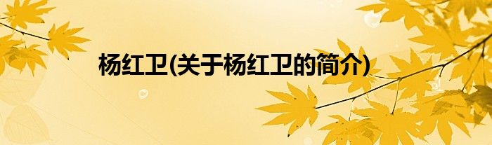 本文关于杨红卫的简介就讲解完毕,希望对大家有所帮助。