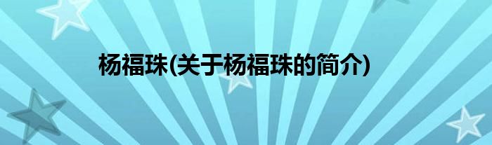 大家好,杨福珠,关于杨福珠的简介很多人还不知道,现在让我们一起来看看吧!