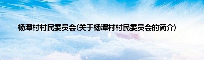 大家好,杨潭村村民委员会,关于杨潭村村民委员会的简介很多人还不知道,现在让我们一起来看看吧!