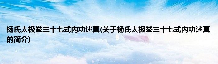 本文关于杨氏太极拳三十七式内功述真的简介就讲解完毕,希望对大家有所帮助。