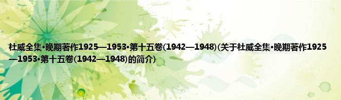 本文关于杜威全集·晚期著作1925—1953·第十五卷(1942—1948)的简介就讲解完毕,希望对大家有所帮助。