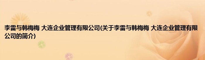 本文关于李雷与韩梅梅 大连企业管理有限公司的简介就讲解完毕,希望对大家有所帮助。