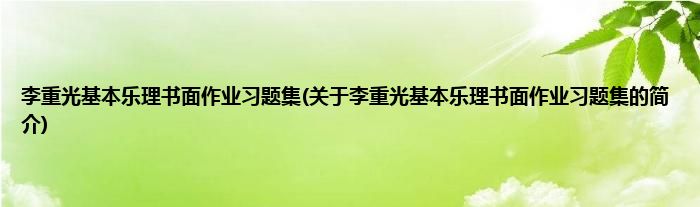 大家好,李重光基本乐理书面作业习题集,关于李重光基本乐理书面作业习题集的简介很多人还不知道,现在让我们一起来看看吧!
