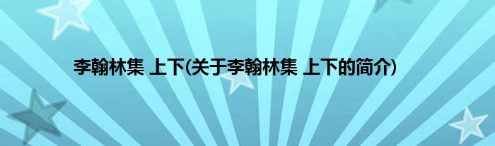 本文关于李翰林集 上下的简介就讲解完毕,希望对大家有所帮助。