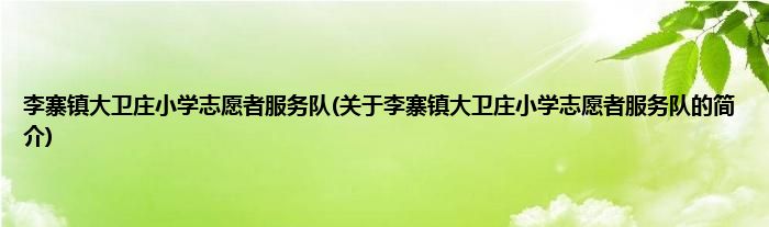 李寨镇大卫庄小学志愿者服务队(关于李寨镇大卫庄小学志愿者服务队的简介)