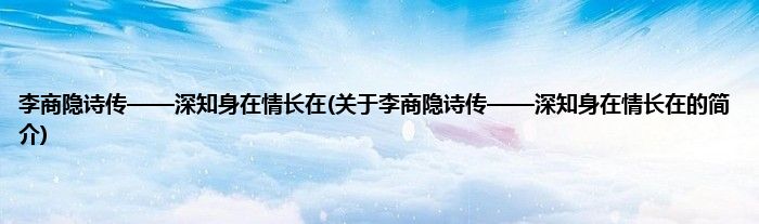 本文关于李商隐诗传——深知身在情长在的简介就讲解完毕,希望对大家有所帮助。