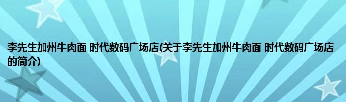 本文关于李先生加州牛肉面 时代数码广场店的简介就讲解完毕,希望对大家有所帮助。