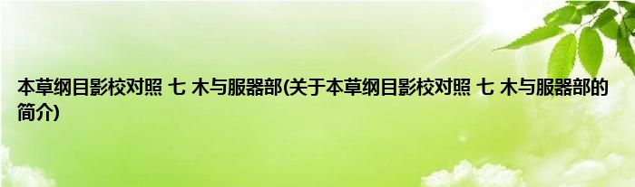 本文关于本草纲目影校对照,七,木与服器部的简介就讲解完毕,希望对大家有所帮助。