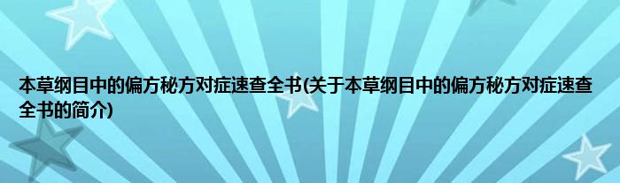 本文关于本草纲目中的偏方秘方对症速查全书的简介就讲解完毕,希望对大家有所帮助。