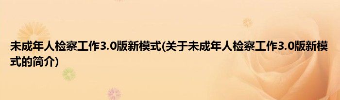 本文关于未成年人检察工作3.0版新模式的简介就讲解完毕,希望对大家有所帮助。