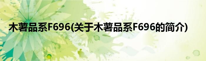 本文关于木薯品系F696的简介就讲解完毕,希望对大家有所帮助。