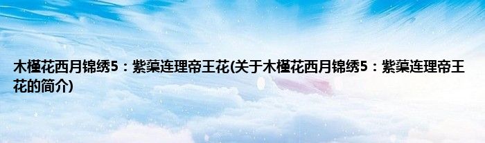 本文关于木槿花西月锦绣5:紫蕖连理帝王花的简介就讲解完毕,希望对大家有所帮助。